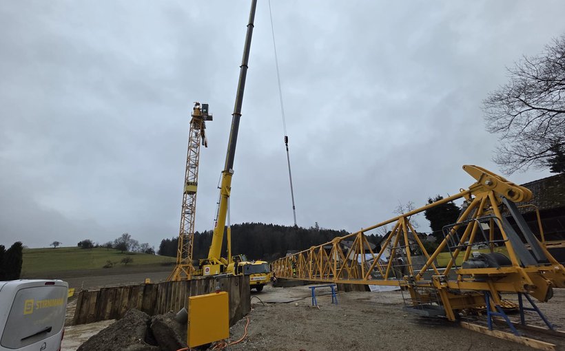 Leuchtturmprojekt! Zwei Kräne stehen momentan auf der Baustelle in Feldbrunnen und stehen dort im Einsatz. Trotz winterlichen Verhältnissen sind wir im Plan mit dem Baufortschritt. spa. Hoch hinaus.