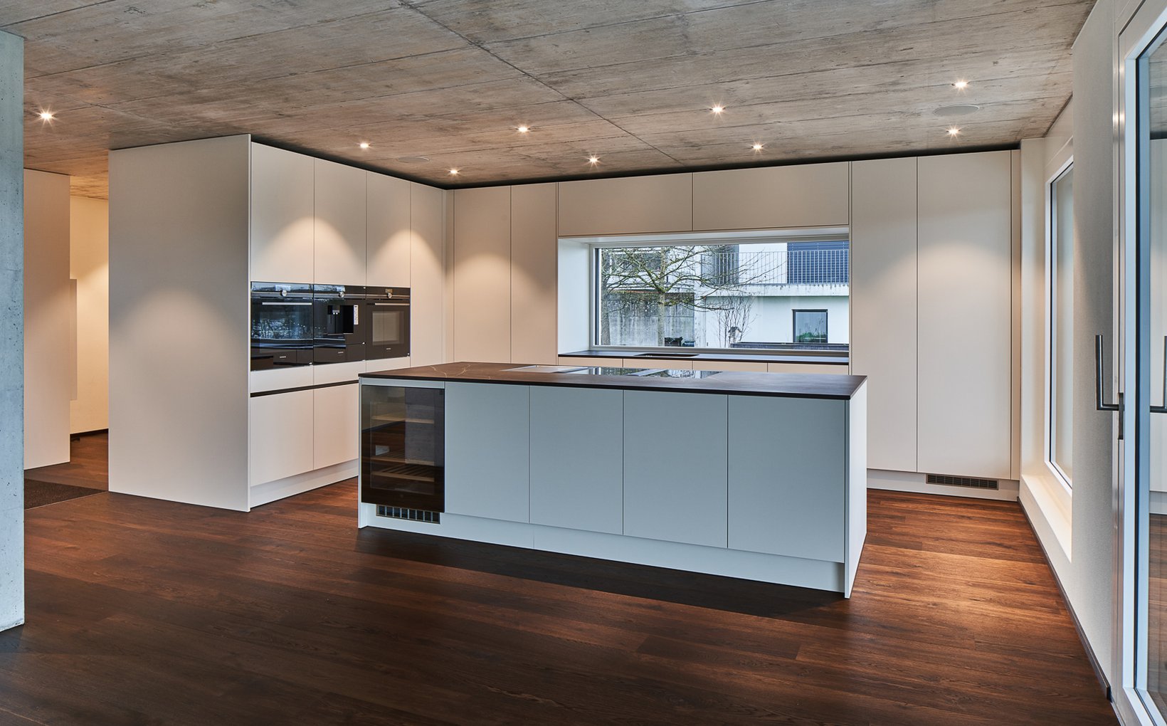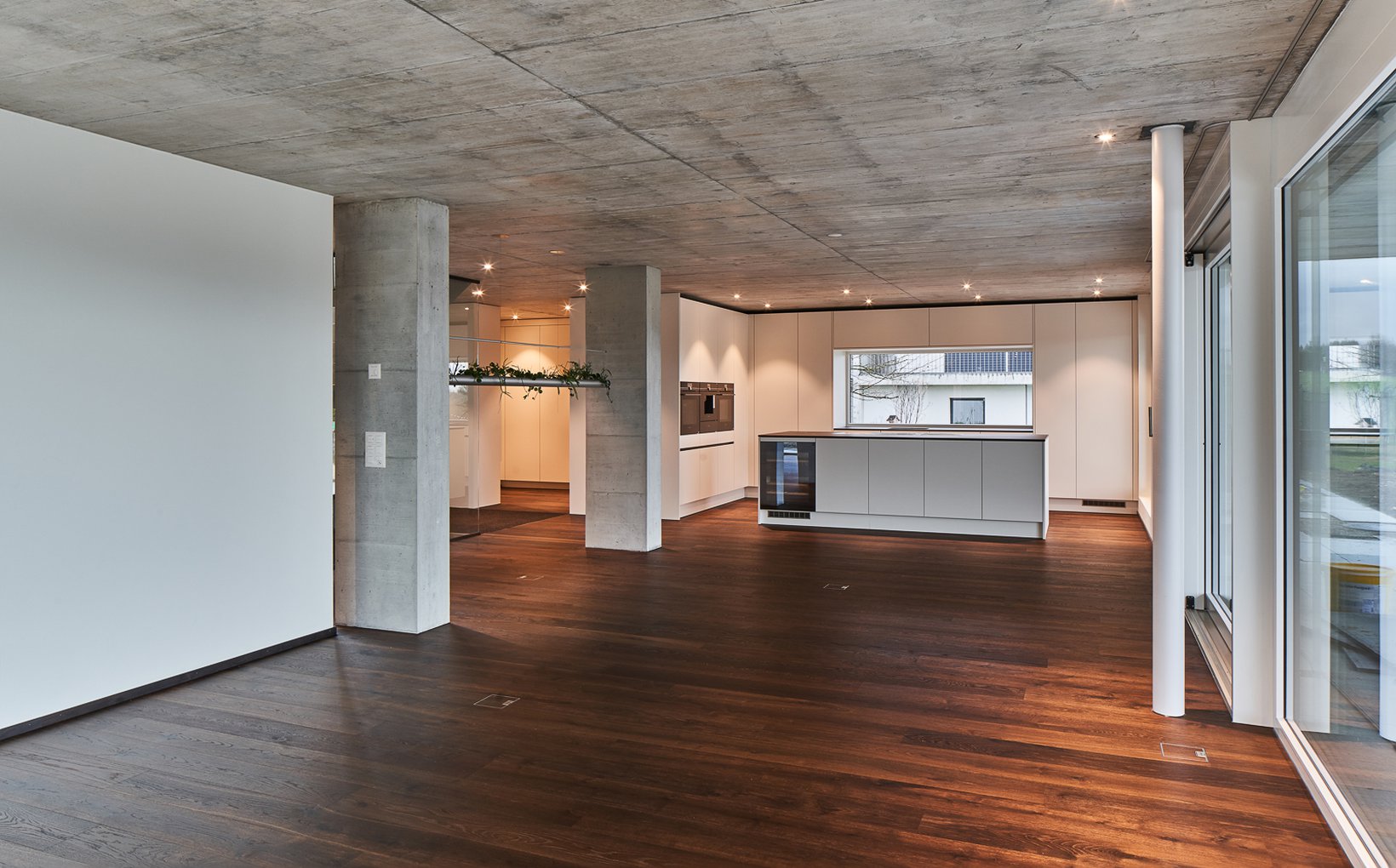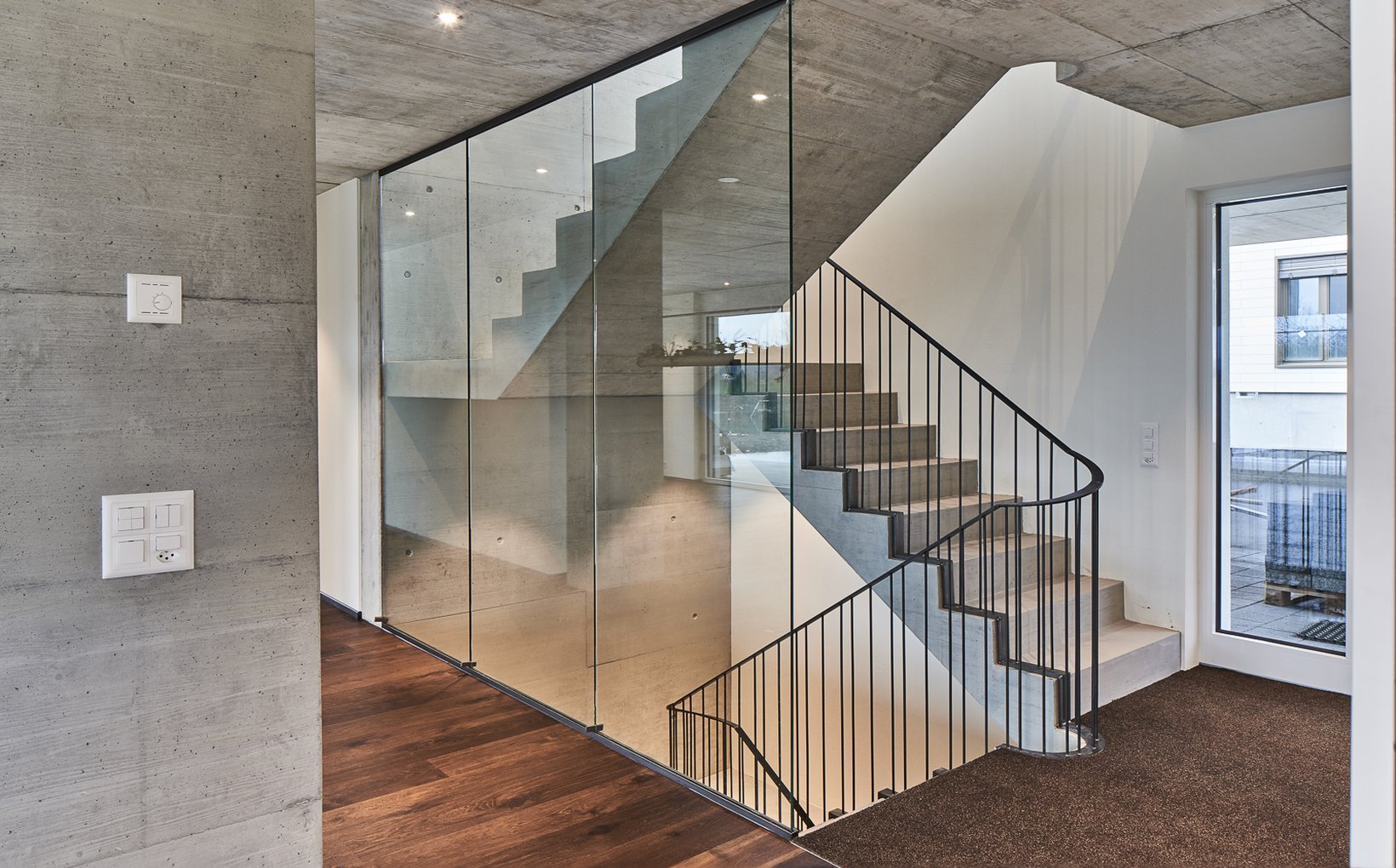 Das grosszügige Einfamilienhaus besticht durch klare Strukturen mit viel Sichtbeton und Schreinerabschlüsse, zeichnet sich durch