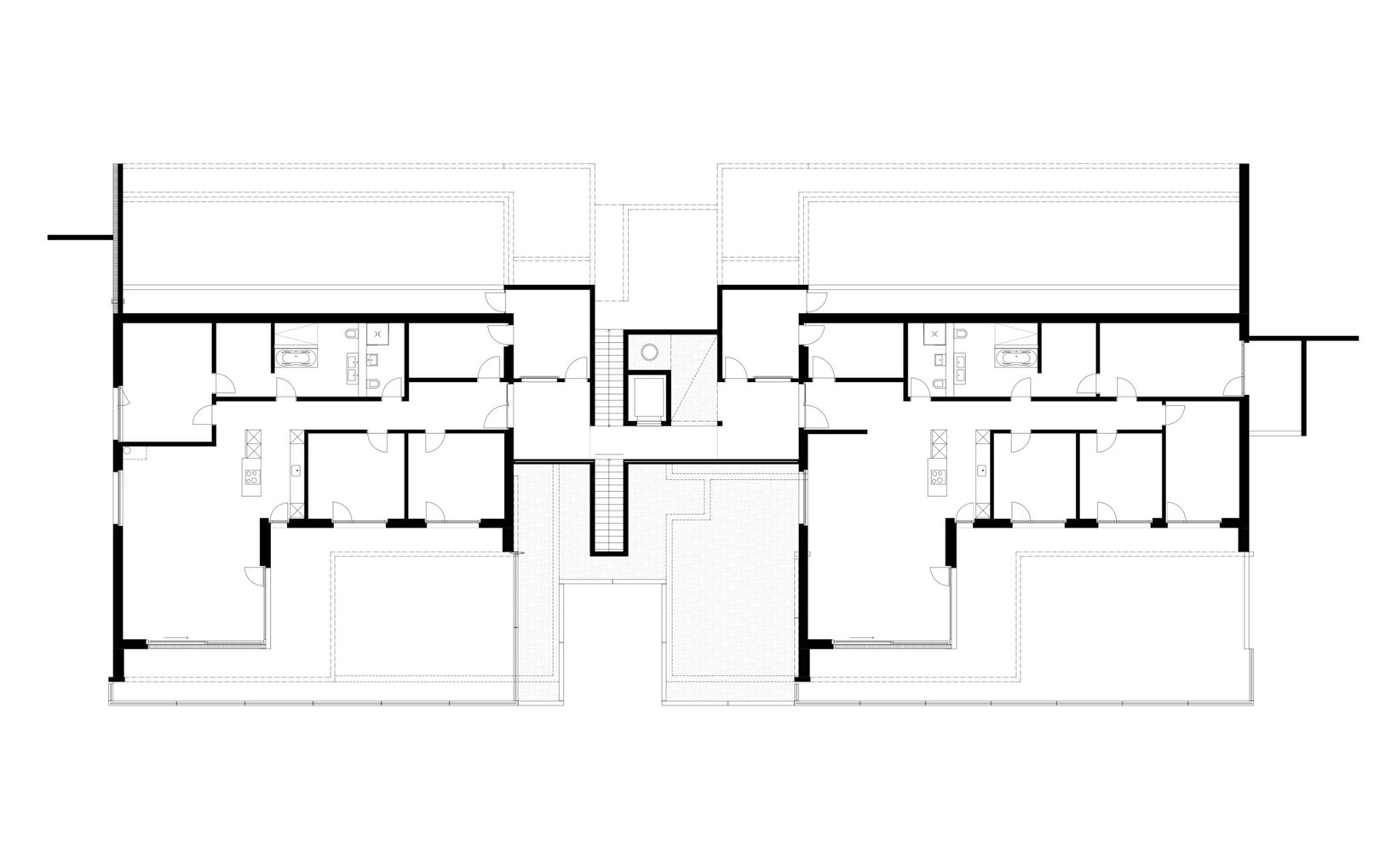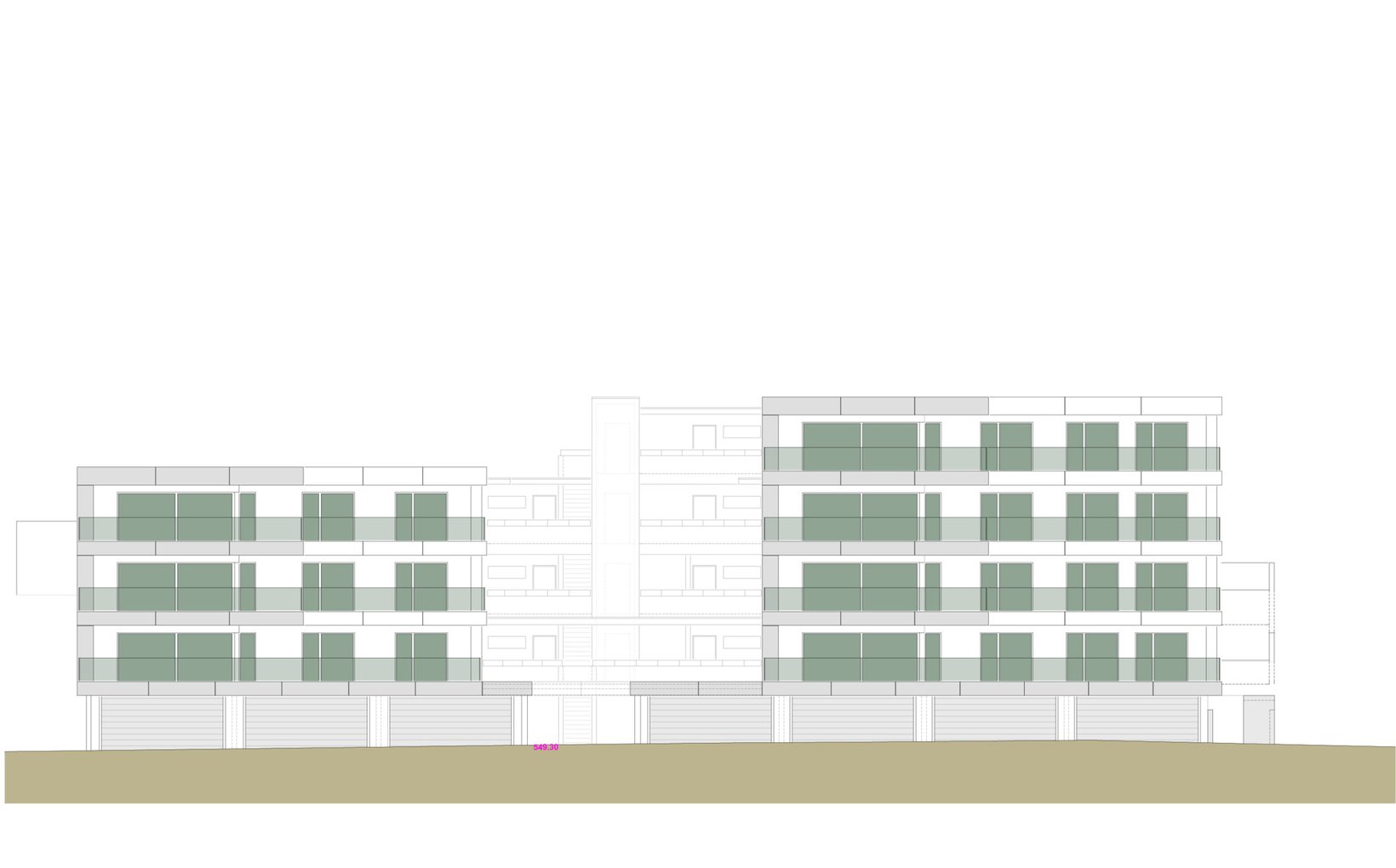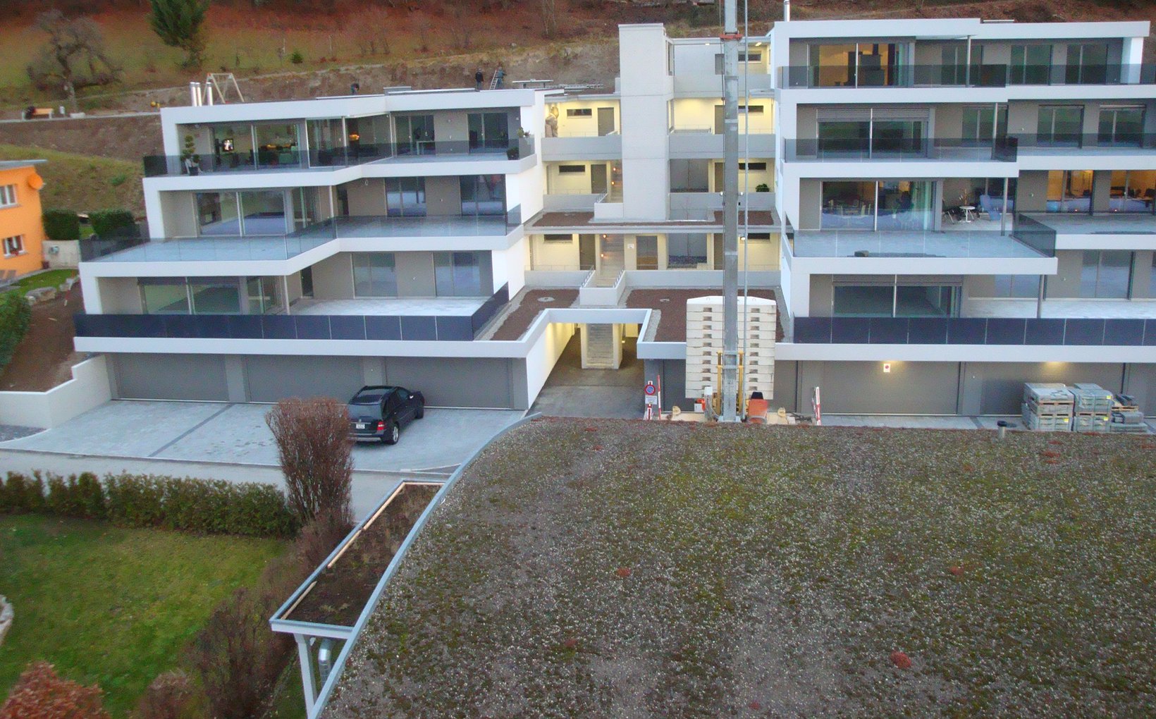 spa: Es entstanden zwei Terrassenhäuser, die durch einen zentralen Bereich mit den vertikalen Erschliessungen, den Treppen und dem Lift, sowie den Zugangsbereichen zu den Wohnungen gegliedert sind. Die Eigentumswohnungen profitieren alle von der exzellenten Aussicht und sind über die Liftanlage hindernisfrei zugänglich. Die zentrale Wärmeerzeugung erfolgt mittels erneuerbaren Energien. Die Garagen und Nebenräume befinden sich auf dem Niveau der Erschliessungsstrasse Zihlacker.