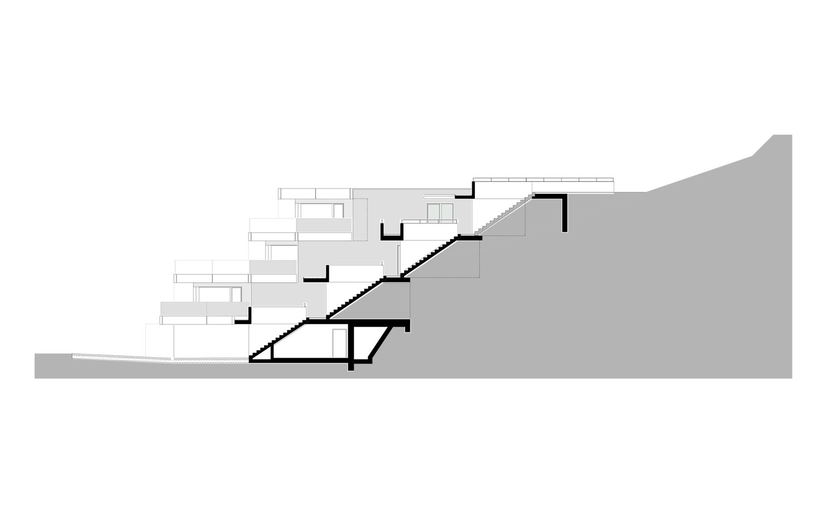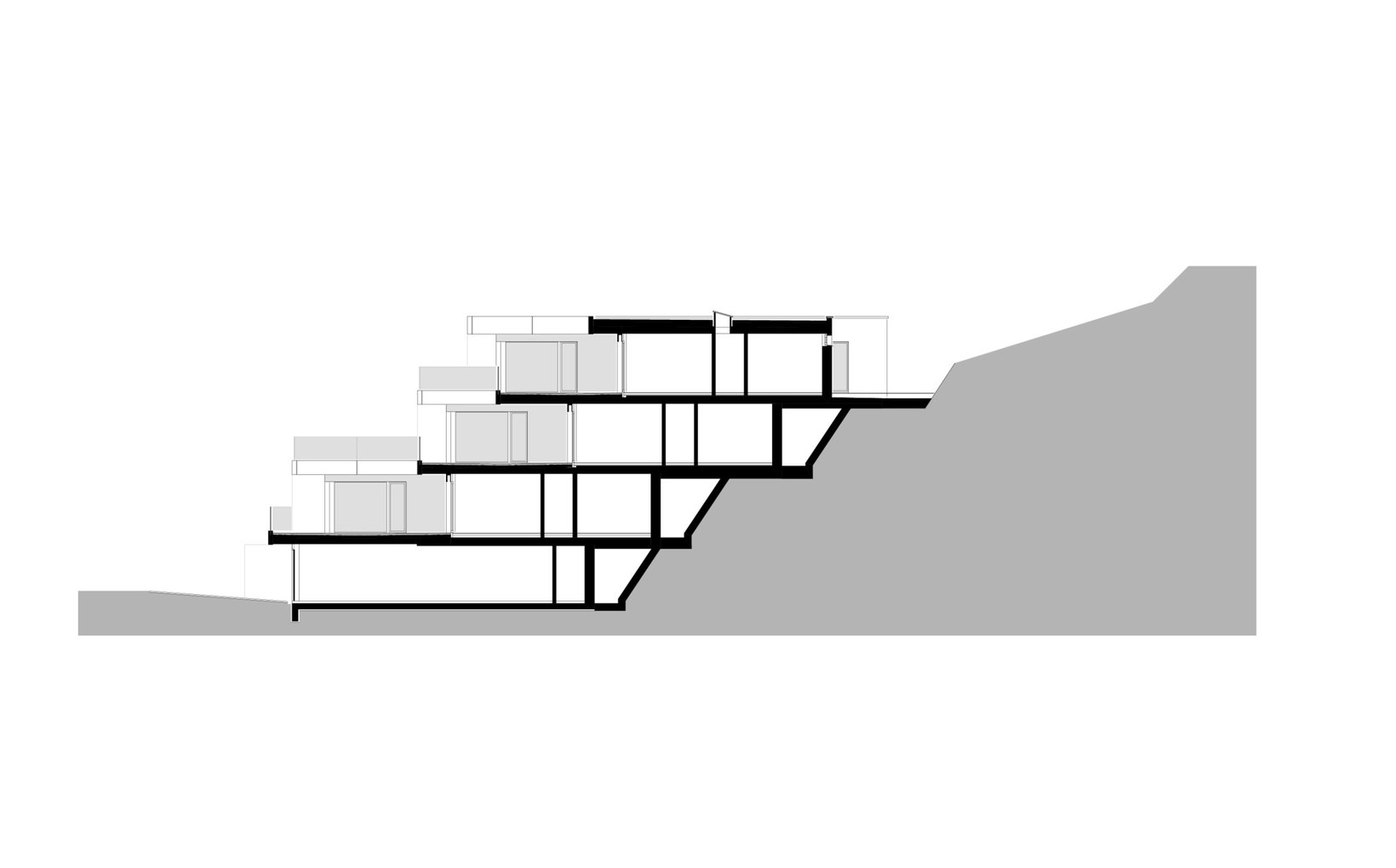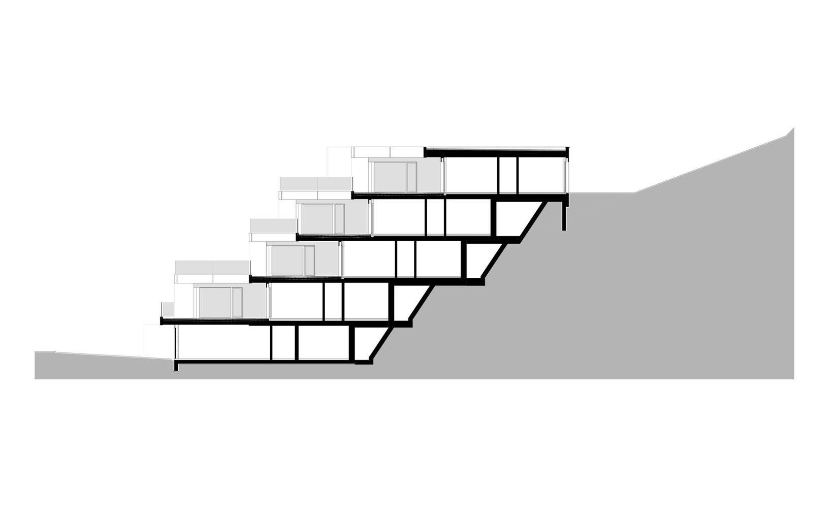 Ziel: Die Terrassenhäuser fügen sich harmonisch in das steil abfallende Gelände ein und nutzen geschickt die Qualitäten des Grundstücks am Waldrand.