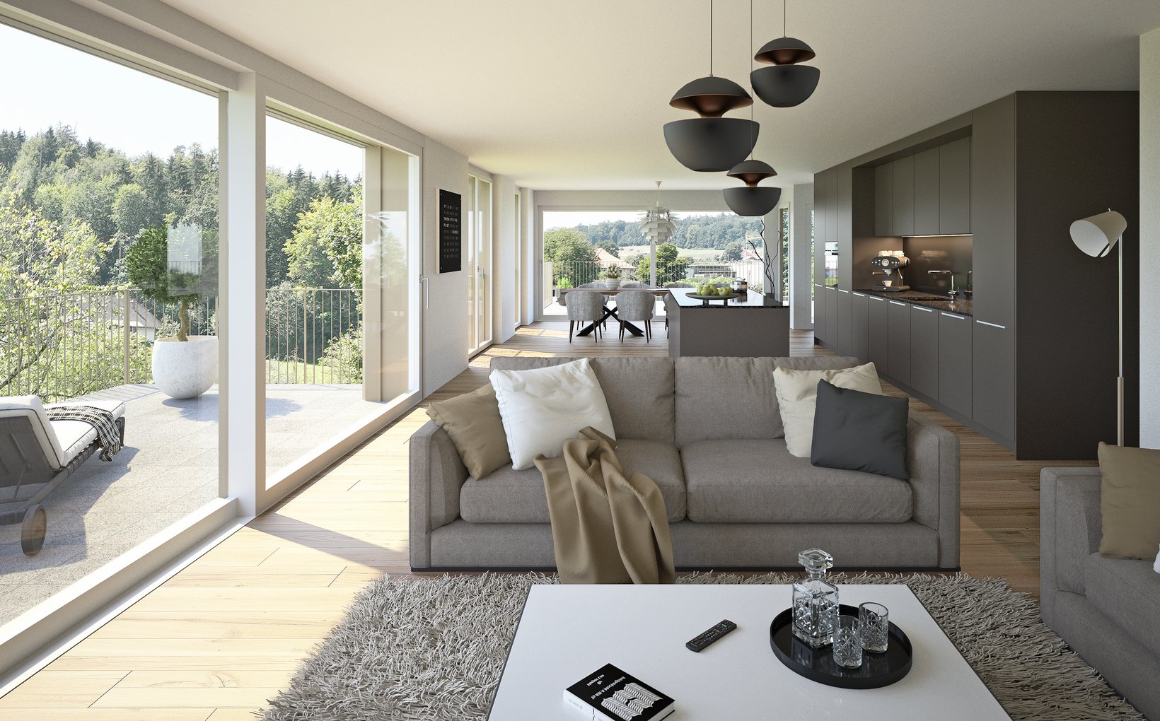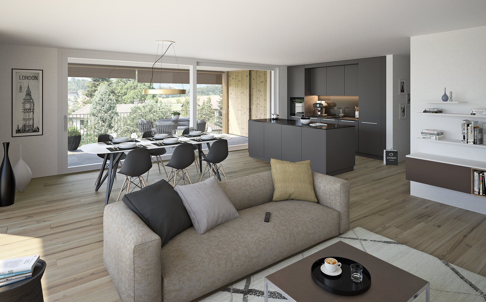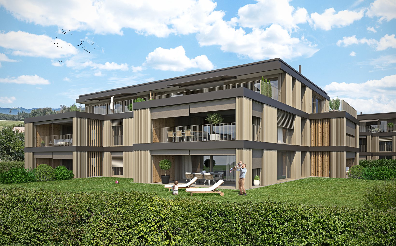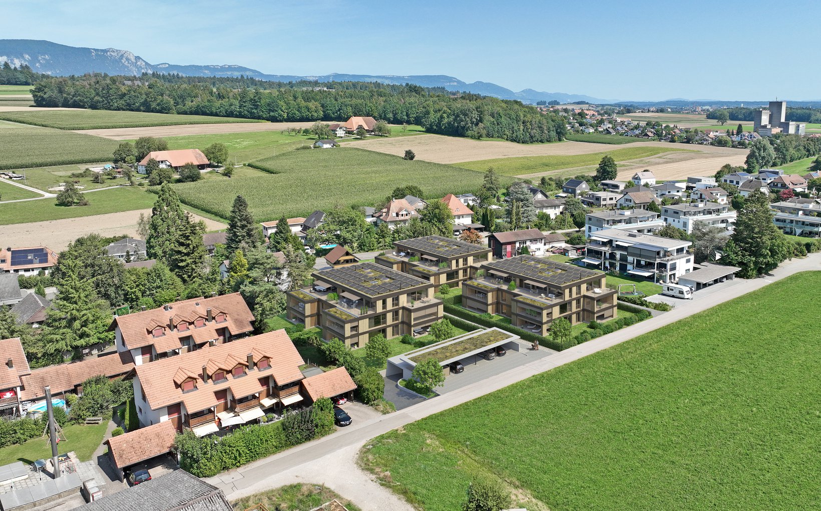 Ziel: Neubau von insgesamt 24 Wohnungen in 3 identischen Gebäuden durch eine gemeinsame Tiefgarage verbunden, Eigentumswohnungen, 3.5 Zi und 4.5 Zi Wohnungstypologie.