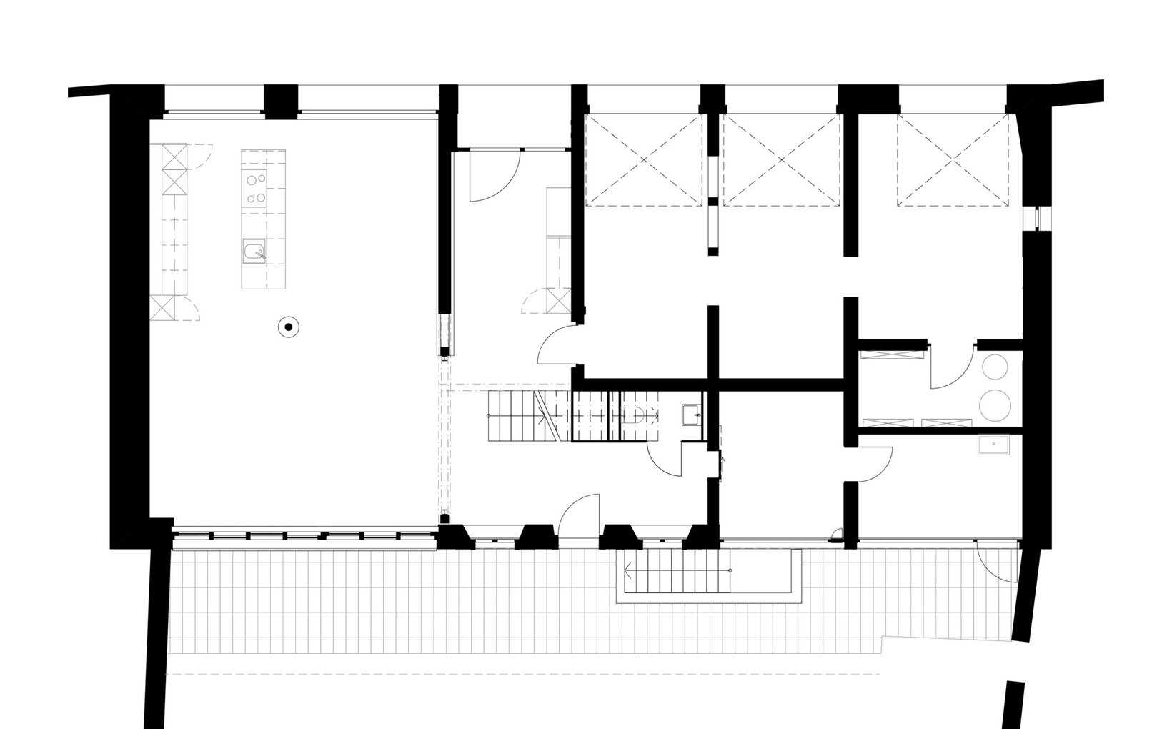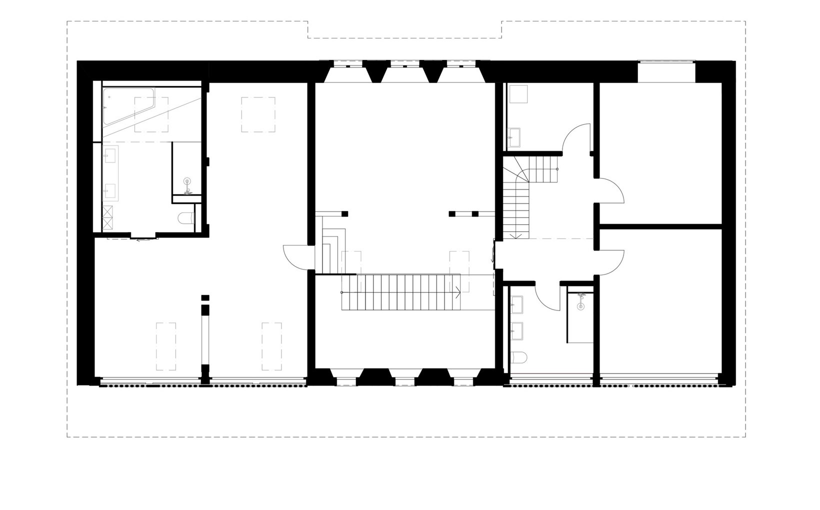 Problemstellung: Die Ostfassade, bestückt mit Kletterpflanzen und zu schützender Sträucher, sollte nur minimal saniert werden. Kompletter Neubau der haustechnischen Installationen.